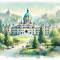 Watercolor Elegance of Victoria's Parliament Buildings in Spring