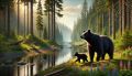 Majestic Black Bear and Cub Exploring Lush Vancouver Island