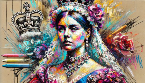 Bathed in vibrant hues and explosive brush strokes, the artwork captures Queen Victoria in a striking neo-expressionist style melded with the smooth textures of oil pastel blending. The portrait showcases an array of emotive colors that tell a story beyond the conventional stoicism associated with the monarch, highlighting a juxtaposition of tradition and modernity. Each stroke adds a layer of depth and emotion, with the fierce gaze of Queen Victoria pulling viewers into a conversation with history. Surrounding the figure are symbolic elements like the regal crown and lush, blooming roses, which enhance the historical ambiance. This piece not only decorates space but also invokes a dialogue about the evolution of royal representation in art. The use of contemporary techniques to depict a historical figure emphasizes the timeless relevance of Queen Victoria's influence. *** About Queen Victoria: Queen Victoria, born in 1819, was the monarch of the United Kingdom of Great Britain and Ireland from 1837 until her death in 1901. During her reign, she became a symbol of British imperial pride and strict standards of morality and personal conduct. Her era, known as the Victorian Age, was marked by industrial, cultural, political, scientific, and military change within the United Kingdom, and was also a period of expansion of the British Empire. She was married to Prince Albert until his early death in 1861, after which she wore black for the remainder of her life, embodying the era's complex relationship with grief and decorum.