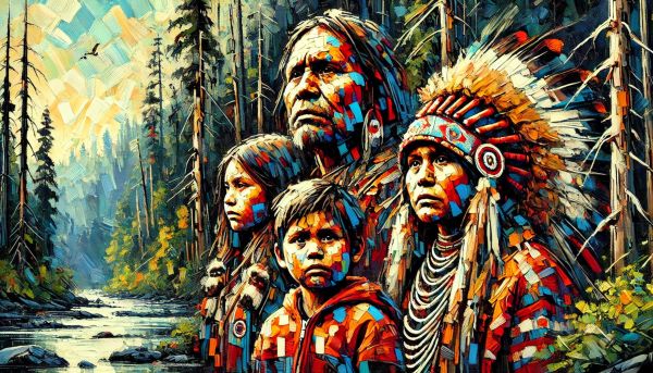Title: Expressionist Tribute to First Nation Family in British Columbia