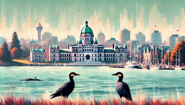 Title: Serene Vista of Victoria BC with Impressionist Influence and Wildlife Highlight Photo ID: 63445