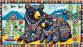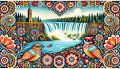 Vibrant Folk Art Depiction of a First Nation Family in British Columbia