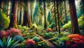 Enchanted Morning at Cathedral Grove: A Fusion of Realism and Digital Art