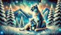 A Winter's Tale: A Stylized Wolf and Pup Amid Snowy Teepees