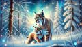Enchanted Winter: Bobcat and Cub Amidst Snowy Forest Splendor