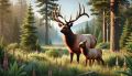 Majestic Roosevelt Elk and Calf in Lush Vancouver Island Forest