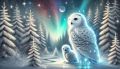 Moonlit Enchantment: Snowy Owl and Chick Amidst Glittering Forest