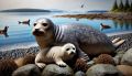 Harbor Seal Mother and Pup on Rocky Shore of Vancouver Island